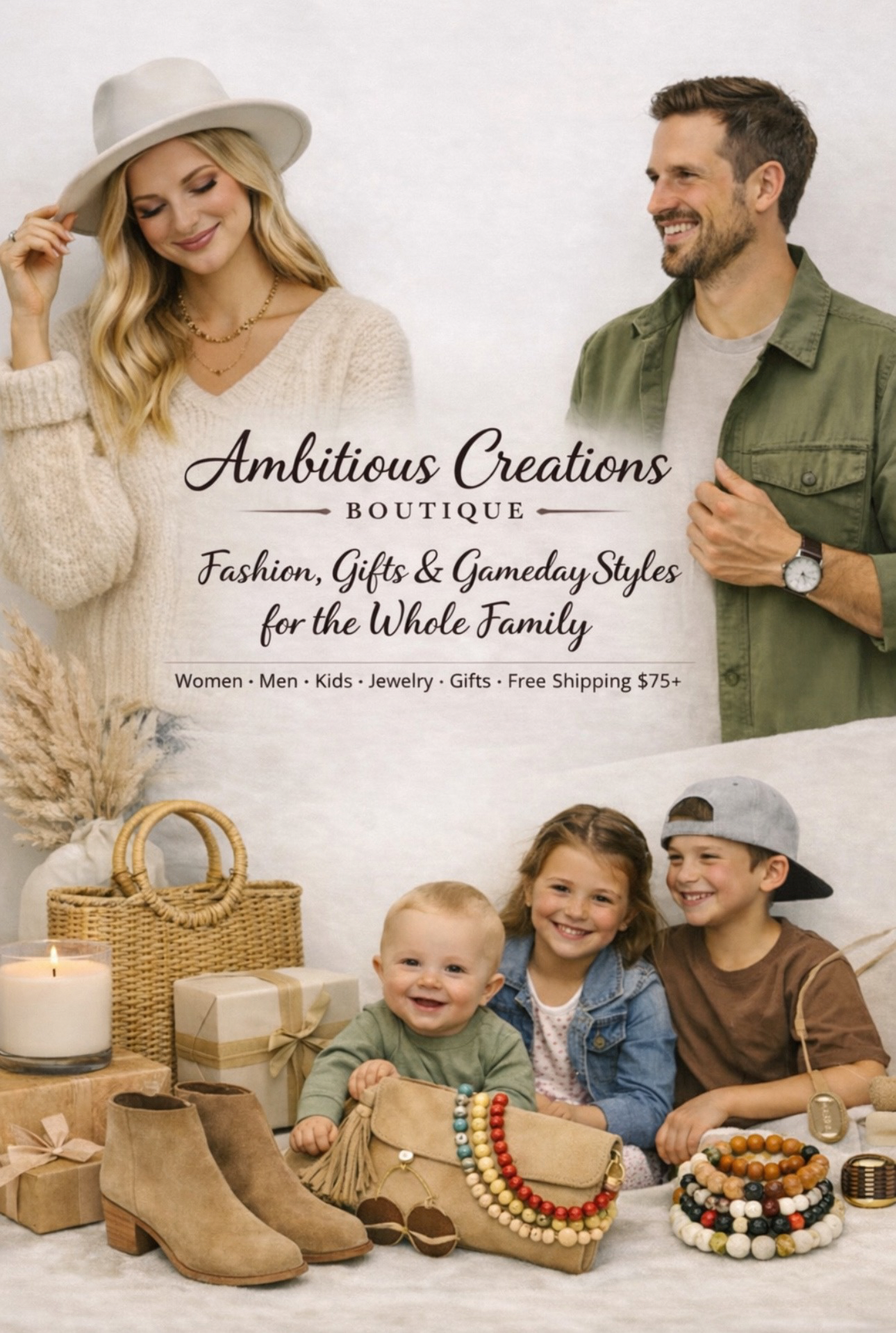 We're your one-stop shop for stylish finds for the whole family. From trendy women's and men's clothing to adorable baby and kids outfits, plus jewelry, gifts, and gameday styles — we have a little something for everyone.