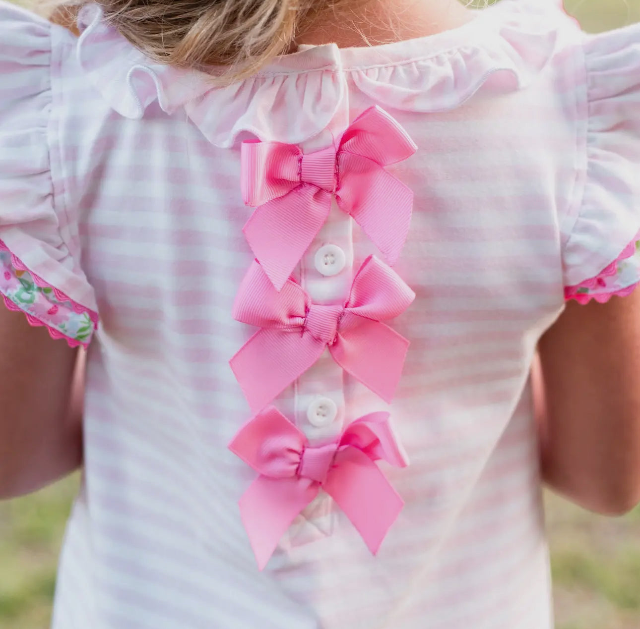 Cutest caddie at the club! Our Floral Golf Set features a soft knit top with an adorable golf cart applique, ruffled neckline and scallop hem. The coordindating shorts have an elastic waist and beautiful floral print.
